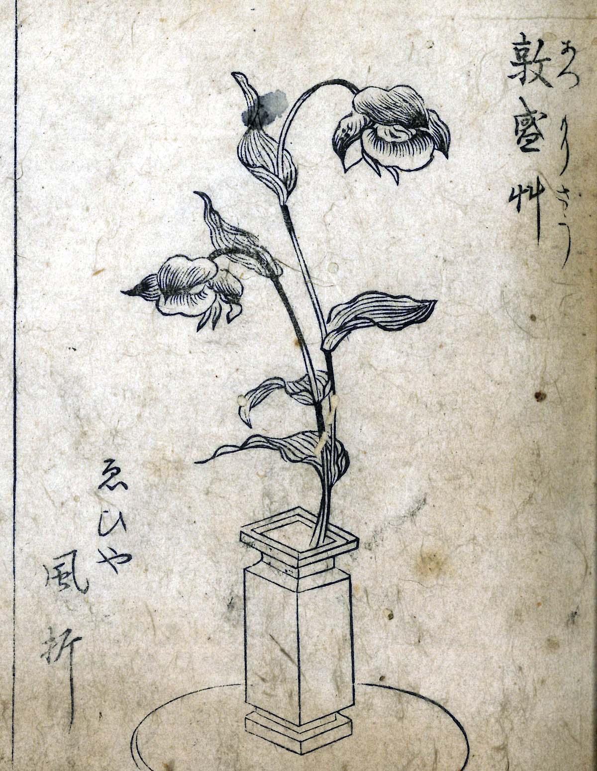 さらに、蔦屋重三郎の出版文化にも焦点が当てられ、『一目千本』『手毎の清水』『抛入華之園』『抛入狂花園』など、生花・投入れの図譜が園芸文化の普及に果たした役割が紹介されました。今回は特別に、蔦屋重三郎の処女出版『一目千本』に登場する110種類の植物と花魁の名前の一覧表を、雑花園文庫所蔵資料にもとづき配布しました。掲載植物を現在の植物名に変換した資料で、当時人気があった植物も想定できることから、参加者からは「貴重な資料を手にできて感激した」との声が多く寄せられました。