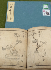 令和7年4月20日(日)「【江戸の園芸で遊ぶ】@名古屋」を開催しました。【江戸の園芸で遊ぶ】は30年近く名古屋園芸で開催されている大人気セミナーですが、このたび特別に園芸文化協会のためにも開講いただけることになりました。講師は当協会常務理事で園芸研究家の小笠原誓さんです。小笠原さんのお父上で、当協会元会長の小笠原左衛門尉亮軒さんが70年間収集されてきた江戸時代の和本、刷り物、浮世絵、巻物、図譜など国会図書館や博物館に行かなくては見られないようなもののなかから、今回は「江戸の春」にちなんだものを特別公開いただきました。しかも国会図書館や博物館と違い、実際に手に取ってご覧いただくことができるのです。