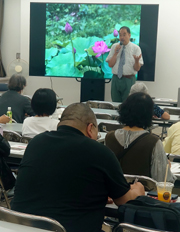 令和7年8月30日(土)日比谷公園内の「緑と水の市民カレッジ」において、「花はなぜ美しいのか~美しさと魅力の秘密をひも解く~」を開催しました。講師はマミフラワーデザインスクールの校長で、考花学者(花文化・美学研究)としてもご活躍の川崎景介さんです。