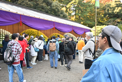 ひと株から数百輪以上を咲かせ半円形に仕立てられる「大作り菊」や、品種ごとに工夫を凝らした花壇など、伝統の技が息づく展示は圧巻で、参加者の皆さんも大いに魅了されていました。