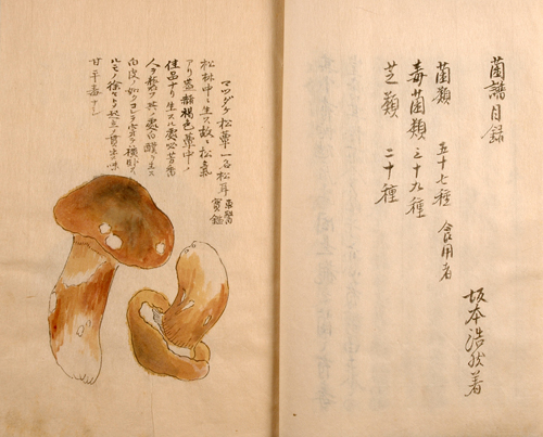 本書の著者は、本草学者であり画家でもあった、紀州藩士坂本浩然であり、天保六年八月、五快楼蔵版により上下二冊美濃版大本として版行された。多くの流布本は木版墨刷に手採色が施され美しい本であるが、当文庫本は著者の弟子に当り、後明治の偉人として知られる南方熊楠の師でもあり、華族女学校の教師でもあった島山啓の自筆写本で上下合本一冊である。