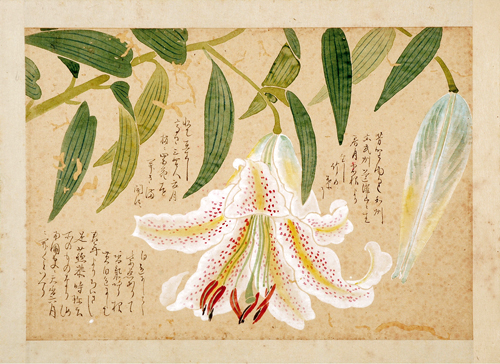 本書題「天香」とは中国のユリの別名。折帖に仕立てられ、文二面、図十面、各図には種名、地方名、漢名など詳細な記述が附されている。