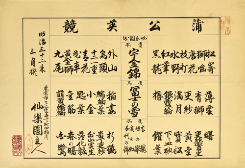 さて今回の資料は、明治中期、どこにでも自生しているタンポポに目を向け、花や葉、草姿の変種株を見つけ出し、栽培化し名称を附けて番附とした。