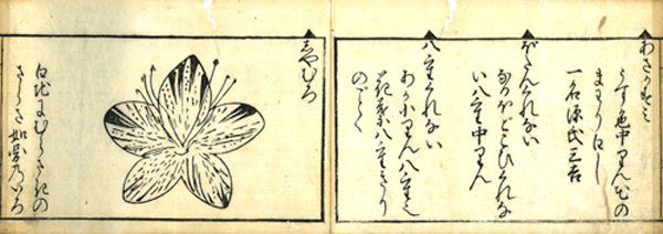 さて本書は元禄八年刊の花壇地錦抄では「長生花林抄」(ちょうせいかりんしょう)と改題したことが記され、享保十八年刊本も伝存する。また、「三花類葉集」(さんかるいようしゅう)とも名付けられたようで、零本ではあったがこの題簽の付された本を見たことがある。